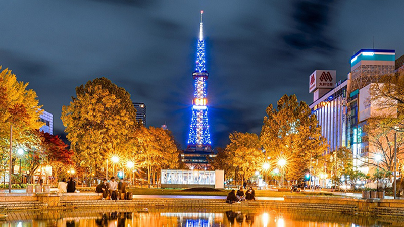 大通公園内には、テレビ塔があり夜にはライトアップされ、札幌の夜景をロマンチックに演出します。
